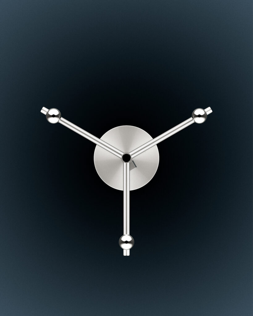It rises to the required height and comes to a stop. A glass, a plate, a forgotten or anticipated object. It does not decide what it holds, nor for how long. It is there to sustain the moment. Its silver structure is precise; lead keeps it faithful to the ground. A die regulates its height, as if the object accepted the minimal chance of each situation. Nothing is fixed; everything adjusts. Together, several of them form a landscape.